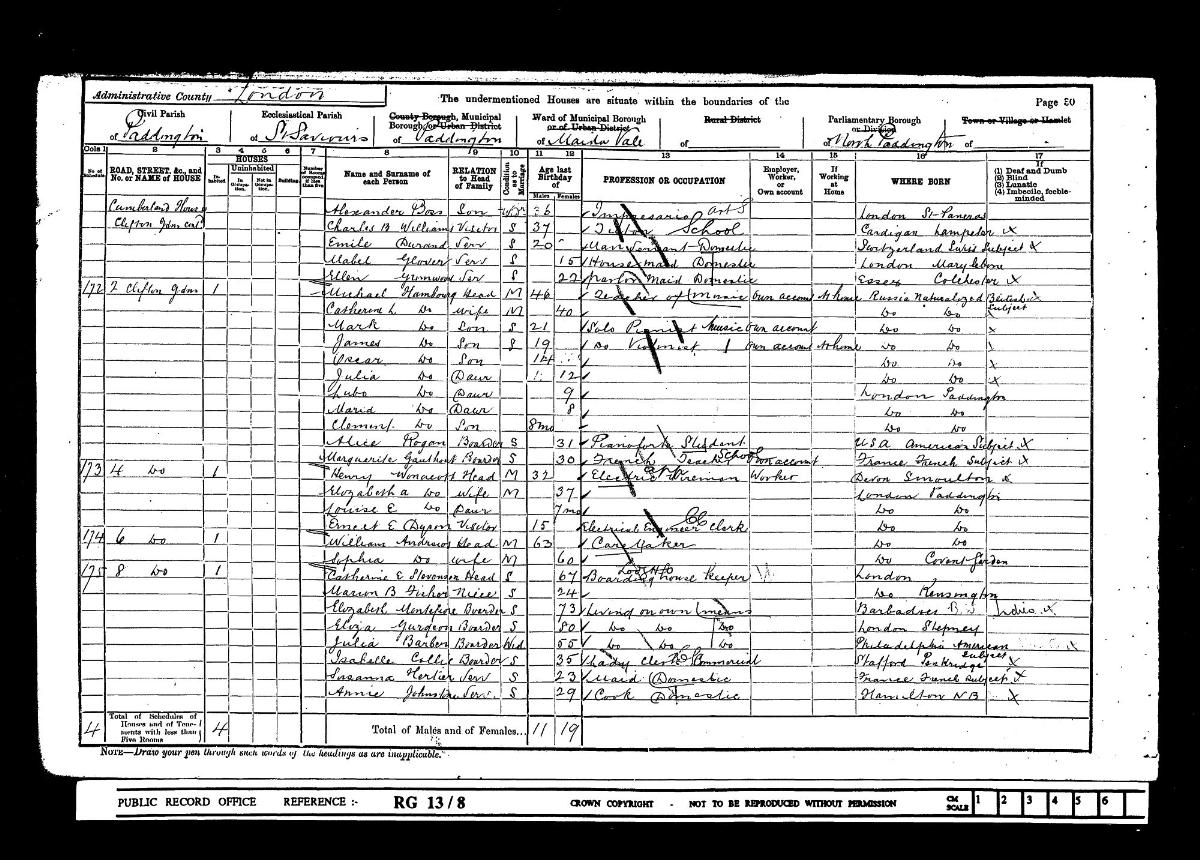 Source: Census 1901 Paddington, London (DURAND, Emile Edmond)