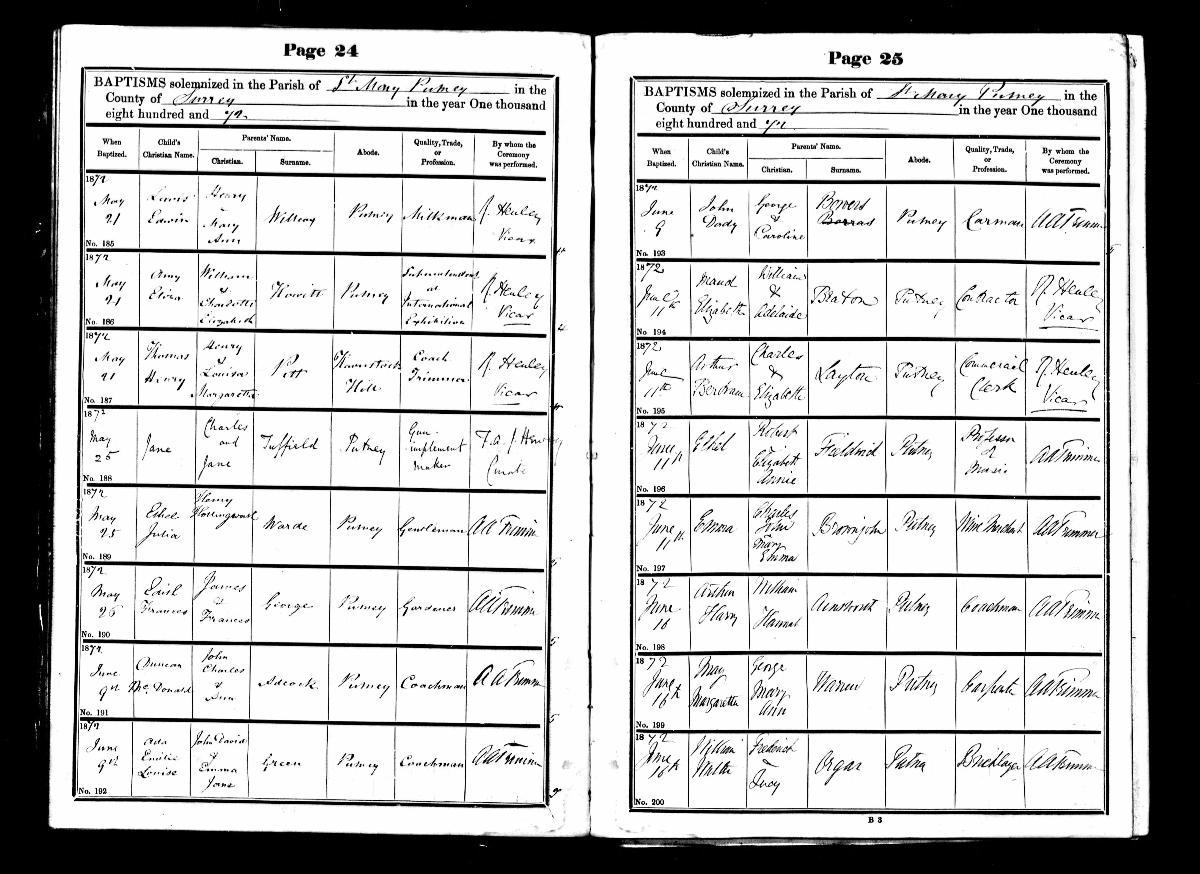 | 4 | Baptism Register 1872 St Mary Putney, Surrey (BOWERS, John Dady). |
