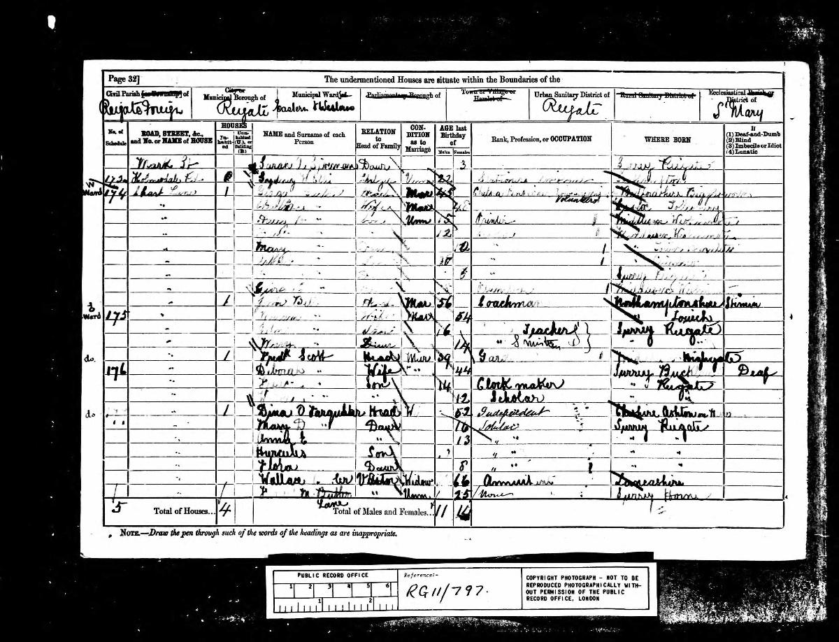 Source: Census 1871 Reigate, Surrey (SCOTT, Frederick)