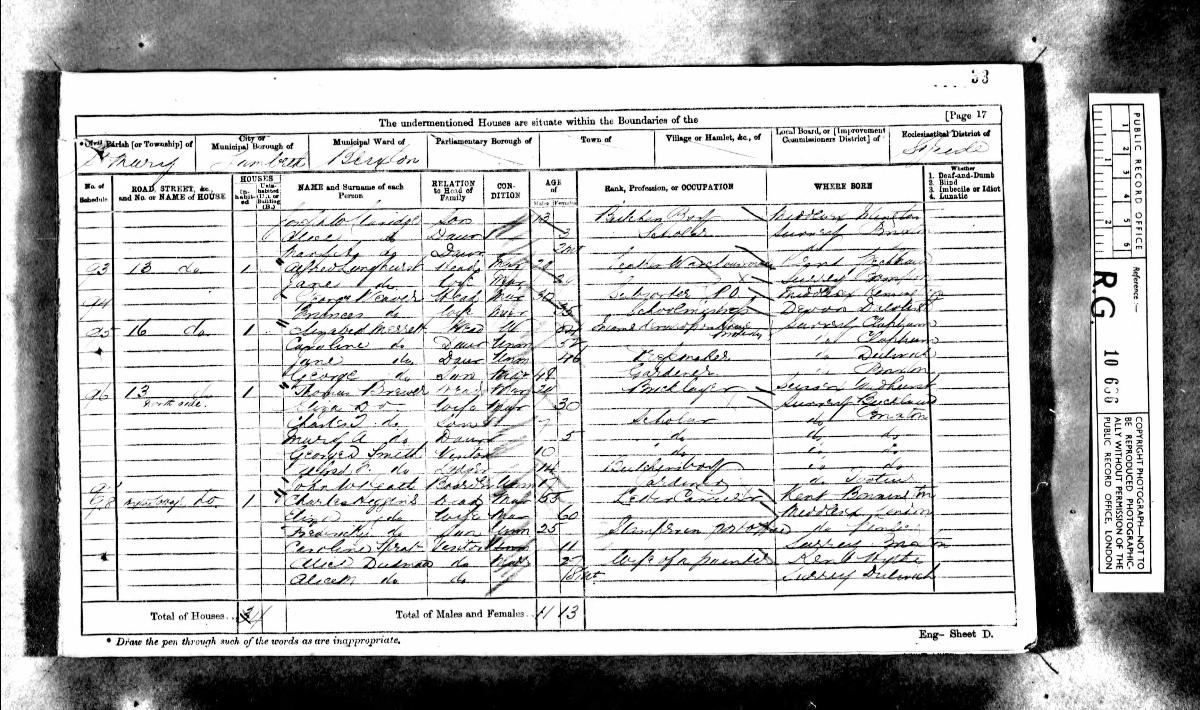 Source: Census 1871 Brixton, Surrey (BREWER, Thomas)