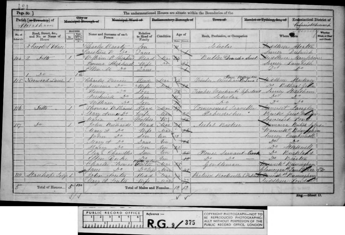 | 5 | Census 1861 Streatham, Surrey (CHANDLER, Eliza) (RG9 Pc-375 Fo-124 Pg-30). |