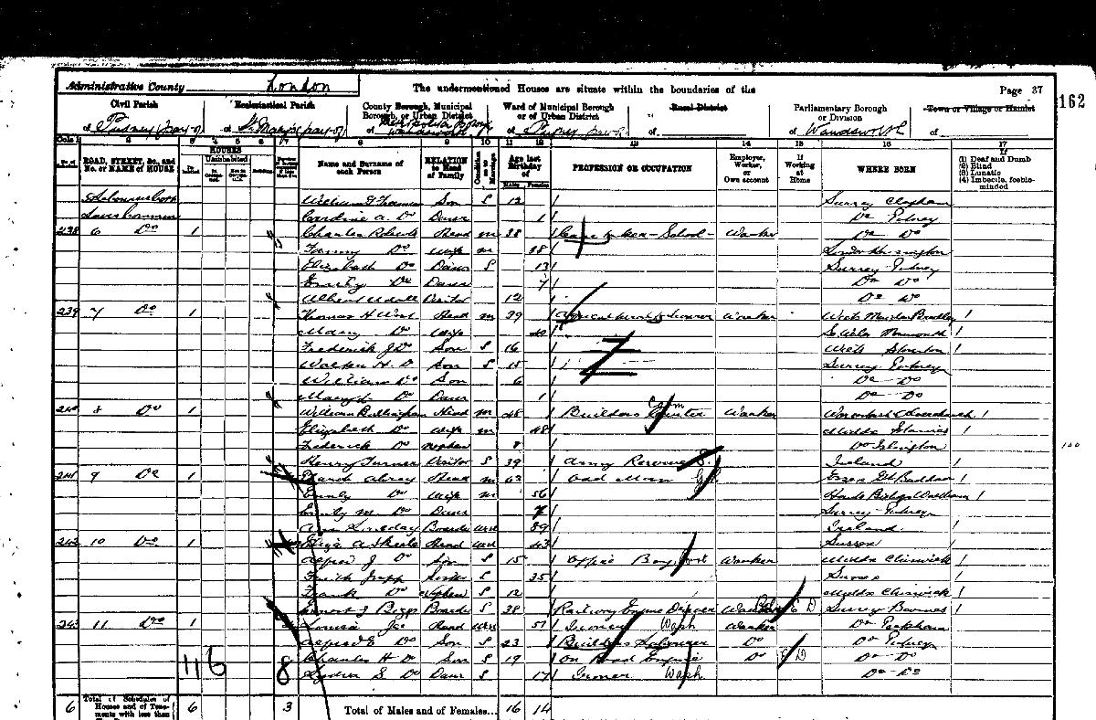 Source: Census 1891 Putney, London (BIGGS, Richard Skeel)