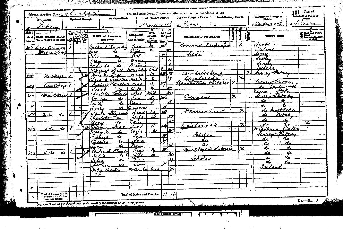 Source: Census 1891 Putney, London (WHITING, Ann Elizabeth)