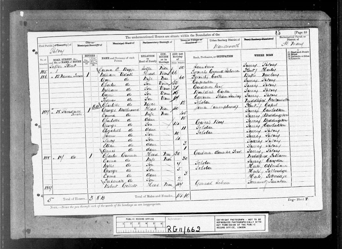Source: Census 1881 Putney, Surrey (WHITING, Emma Eliza)